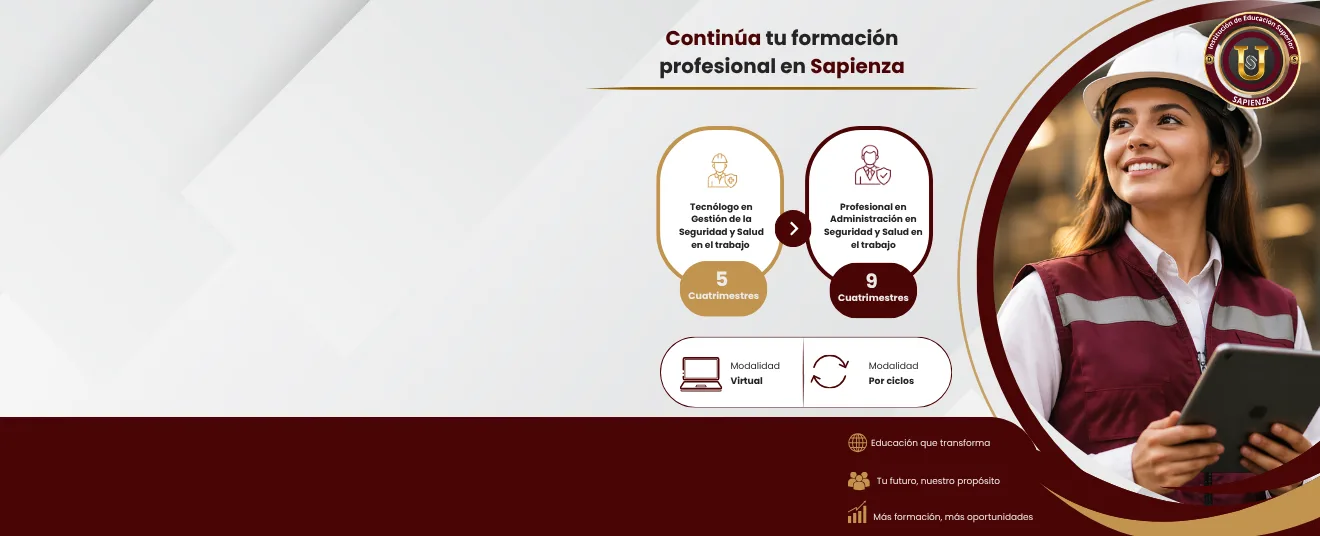 Inicia como Tecnólogo en Gestión de la Seguridad y Salud en el trabajo y avanza al nivel profesional sin empezar de cero.